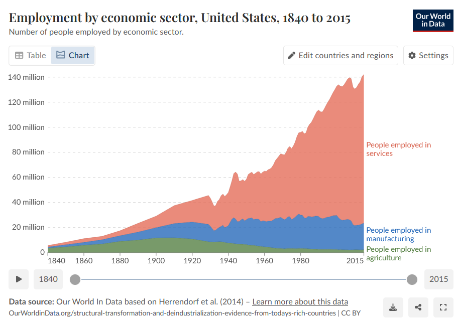 The jobs Graeber complains about are not pointless. They appear pointless because most people don’t have the time to try to understand the purpose of every job in existence, because in a highly-developed country, there are a lot of highly-specialized roles to fill. These jobs have a point—they give you lots of things you enjoy. Part of the reason (though not the primary reason) good restaurants pervade the US is because private equity CEOs keep them well-managed while legal consultants keep them from violating obscure laws.