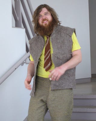 This idea that we often rely on others to make things we can’t make is a pretty good intuition pump, since it gets people thinking about the benefits of specialization and trade. This man in his terrible suit provides an image of how difficult it can be to make a good product using only local materials.